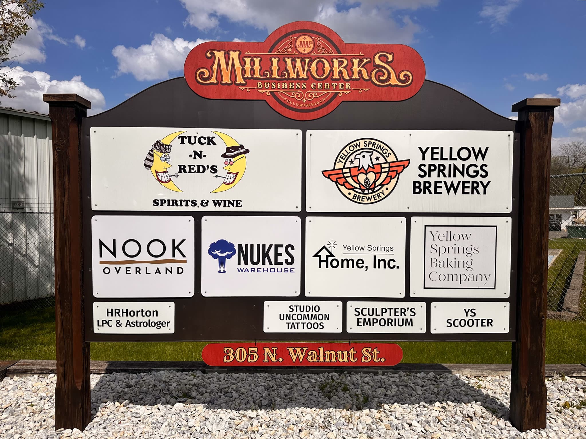 Millworks Business Center is home to Yellow Springs Brewery, Tuck N Red's Distillery, YS Baking Co, Nukes Baseball Training, Lark Overland Camper Dealership, YS Home Inc, Studio Uncommon Tattoo Shop, Blue Sky Technologies, YS Solar, Spencer Building Group, Sculptor's Emporium, HRHorton, and YS Scooter.