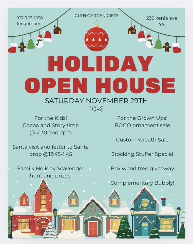 Complementary champagne at our wreath making bar. BOGO ornament sales! Stocking stuffer sales! Scavenger hunt and raffle!