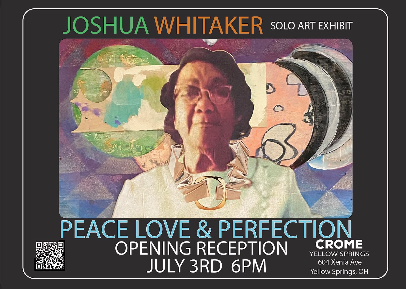 New arrival to YS…Bay Area artist Joshua Whitaker will be showcasing new works in collaboration with Crome Yellow Springs and musical guests, presenting an evening of art, music, food, discussion, and participation.